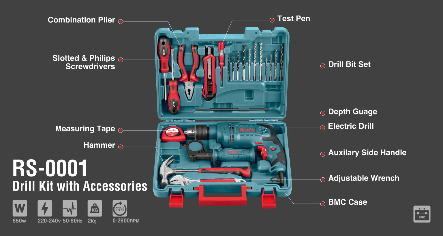 دریل چکشی رونیکس مدل RH_0001همراه با متعلقات 21پارچه